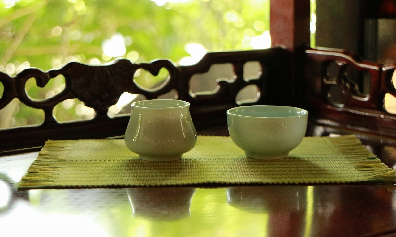 淹れたお茶はまずこの杯に注いでから、品茗杯に移していただきます。まずは聞香杯にほのかに残された香りを愉しみます。丁寧に入れた中国茶を美味しく味わうための茶器です。