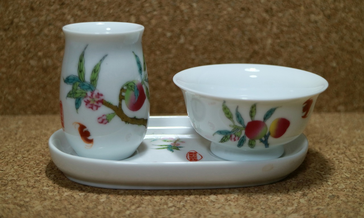 仙桃杯組三件 小(飲杯+聞香杯+双併託) ちょっと贅沢