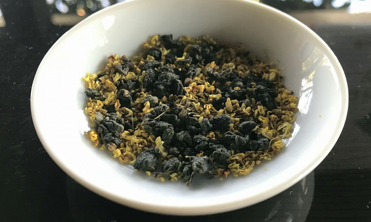 最適なブレンド率となるよう、50gの茶葉に対して15gの菊花をセットしました。