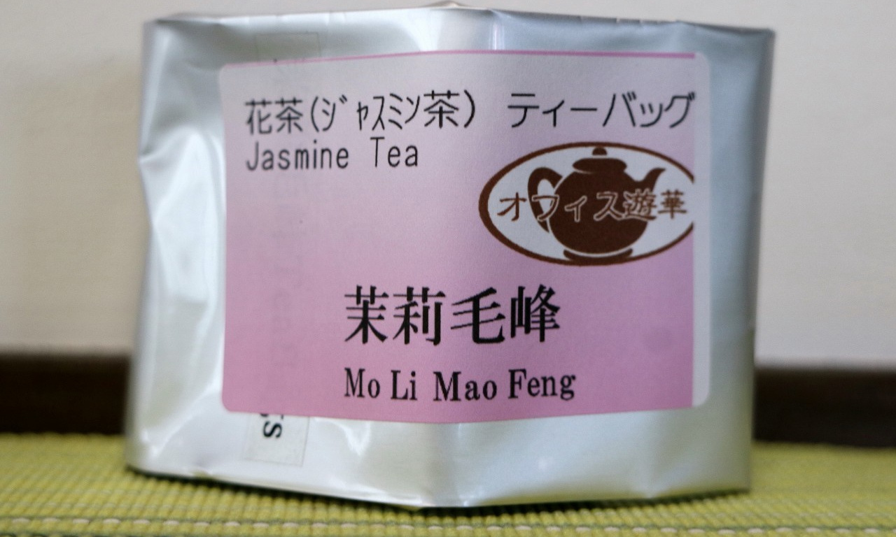 台湾産の茉莉花茶。中国大陸産の茉莉花茶の場合、ベースとなる茶葉のほとんどが緑茶であるのに対し、台湾では“包種茶”と称される、烏龍茶の中で発酵度の低い茶葉を主として使用します。